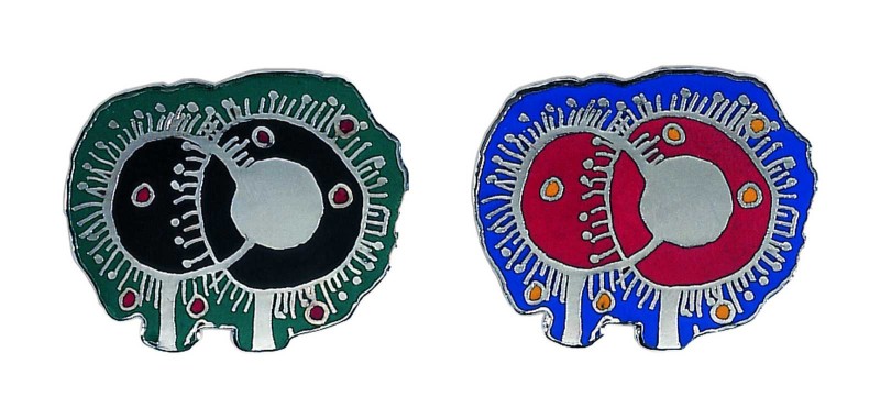 nord email, Vienna, for KunstHausWien MuseumShop, Vienna; 1993 produced by trendset/Premium Promotions, Vienna; 2021 produced by Premium team, Vienna for Hundertwasser Art Centre Whangarei, New Zealand (pins/magnets of no. I, II, III, IV, VII, VII)