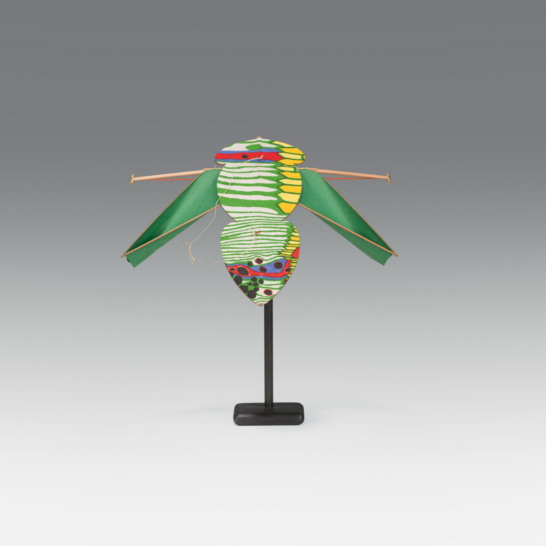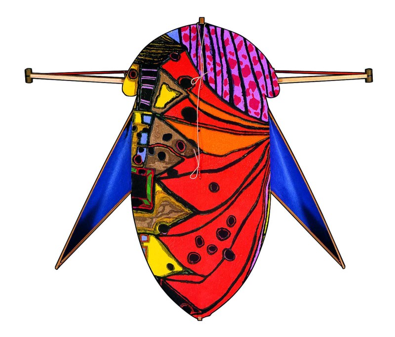 Bei Hundertwasser handelt es sich um japanische Drachen in den traditionellen Formen der Insektendrachen, wie sie in der Region um Nagoya zu Hause sind. Der Tradition entsprechend ist der Zikadendrachen mit einem unari-Schwirrholz ausgestattet, dessen gespannte Sehne im Wind das typische Zirpen der Zikade erklingen läßt. Hundertwasser ließ sich dazu bewegen, eine Serie von Drachen zu gestalten, in der die zwölf Formen aus dem Repertoire Masaaki Satos enthalten sind, darunter Zikaden, Bienen, Hummeln, Pferdefliegen und der runde Wanwan-Drachen.