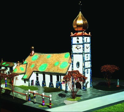 Schließlich konnteHundertwasser international mehr als 40 beispielhafte Architekturprojekte realisieren, in denen es das Fensterrecht und die Baummieter gibt, den unebenen Boden, Wälder auf dem Dach und Spontanvegetation. In seinem architektonischen Werk setzte Hundertwasser Vielfalt anstelle von Monotonie, das Organische und unreglementierte Unregelmäßigkeiten in Harmonie mit der Natur anstelle des Rastersystems.
