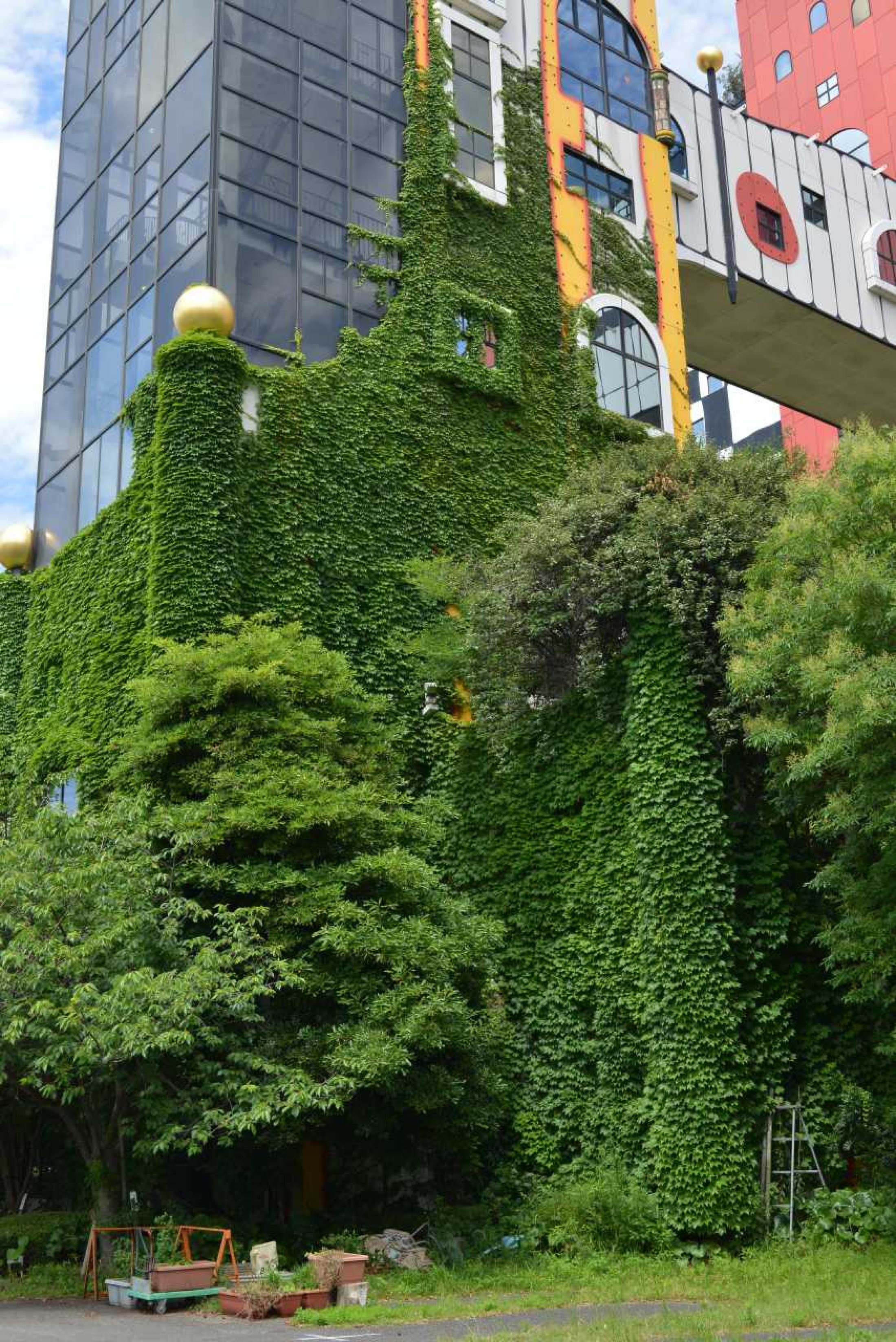 Im Auftrag der Stadt Osaka übernahm Hundertwasser die architektonische Gestaltung dieser Schlammverwertungsanlage, die sich in der Nähe der Müllverbrennungsanlage befindet. Geplant wurde dieses ungefähr 170 Meter lange, 110 Meter breite und 40 Meter hohe Industriegebäude mit dem fast 140 Meter hohen Kamin-Turm vom japanischen Architektenbüro Mitsubishi Jisho Sekkei Inc. Die Anlage dient dem Recycling von Klärschlamm zur Produktion von Ziegeln, Fliesen und Bodenplatten. Hundertwasser konzpierte das unterste Drittel, ca. 30 Meter des Schlots, als eine bewaldete Spirale, die sich organisch in unregelmäßigen Abständen emporwindet und mit einem speziellen Bewässerungs- bzw. Wasserregulierungssystem ausgestattet ist.