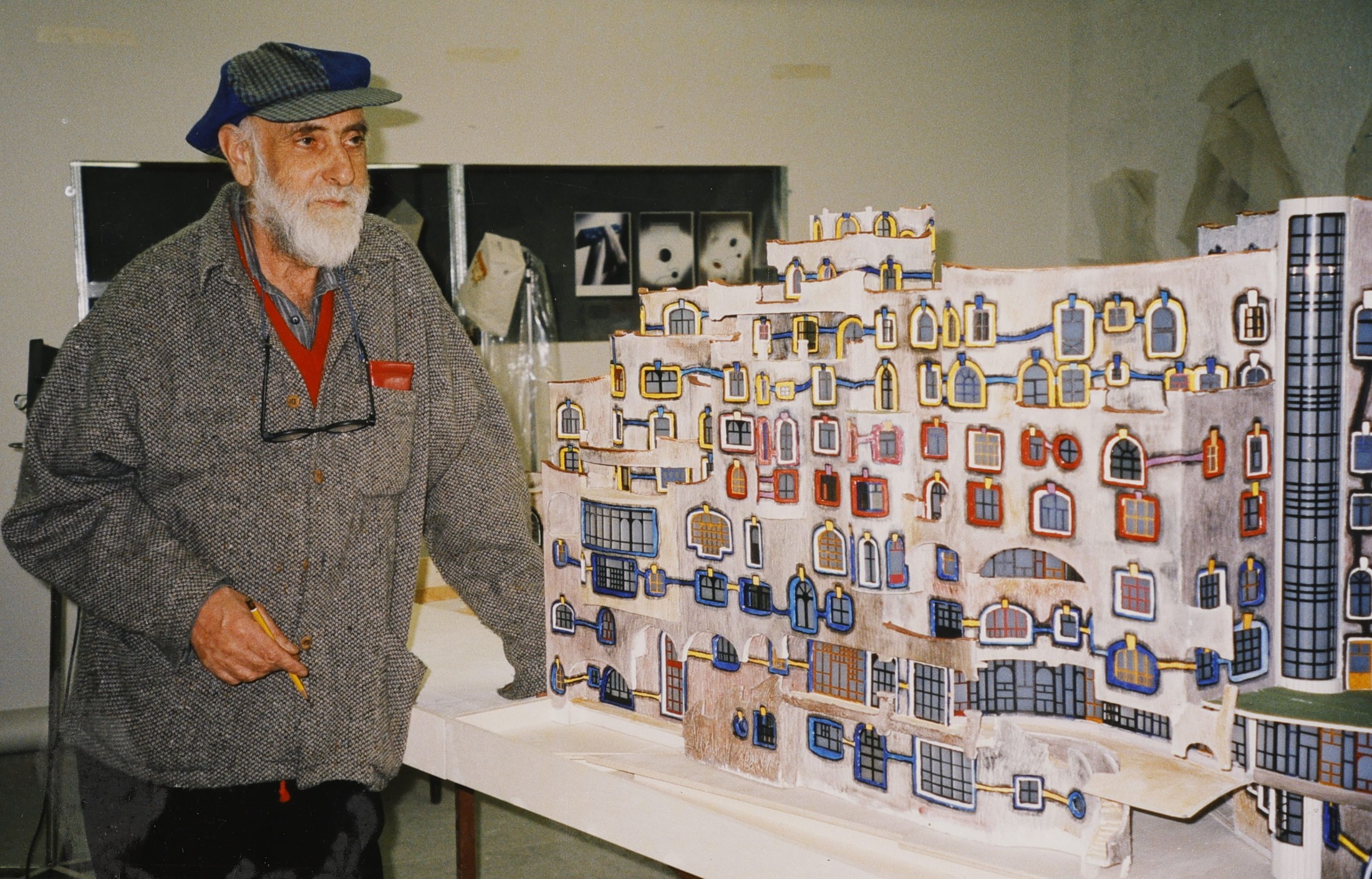 Die Besonderheit dieser Architektur ist Hundertwassers HOHE HAINE. Es handelt sich um ein 36 Meter hohes Gebäude, in dem Wohnungen "an der Unterseite der Wiesen hängen". Ein Modell dieses HOCH-WIESEN-HAUSES im Maßstab 1:20 wurde 1983 in München anläßlich der Internationalen Gartenbauausstellung im Westpark gebaut und blieb dort als ständiges Exponat. Die Idee zu dieser architektonischen Form hat Hundertwasser 1970 in einer Zeichnung entwickelt und 1971 im Gemälde 699 Die Häuser hängen unter den Wiesen weiter ausgeführt. Mit dem Hoch-Wiesen-Haus hat er sich immer wieder in Modellen und Manifesten sowie in der Radierung 909 Die endlose Stadt beschäftigt.
