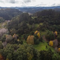 Luftaufnahme von Hundertwassers Kaurinui Valley