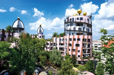 Das Hundertwasser-Projekt fügt sich in ein architektonisch einmaliges Ensemble mit dem gotischen Dom, dem romanischen Kloster und den barocken und klassizistischen Gebäuden des Landtages ein und bildet gleichzeitig einen Gegenpol zum benachbarten Bankgebäude und den umliegenden Bauten der Nachkriegsarchitektur.
